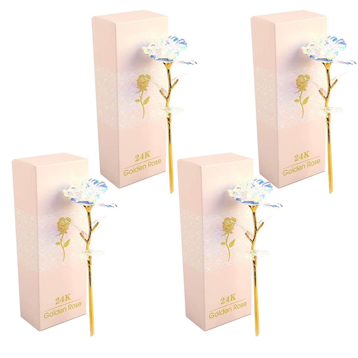 I am very pleased with these galaxy 24 k roses! They arrived when expected. These roses are sooo pretty and are packaged in a really nice and sturdy purple box. I had ordered 1 dozen of these roses, but when my package first arrived, there were only 4 roses in the package! I Panicked, so I contacted Customer Service, and they were Wonderful! 'Janice' explained to me that my order was split up into 3 packages, so that I would be receiving the other 2 packages soon, and she was right! I received them a day later! 'Janice' followed up with me to make sure that I had received all of the packaged, and I was so happy to tell her Yes! Their Customer Service is Top Notch! I will definitely do business with them again!