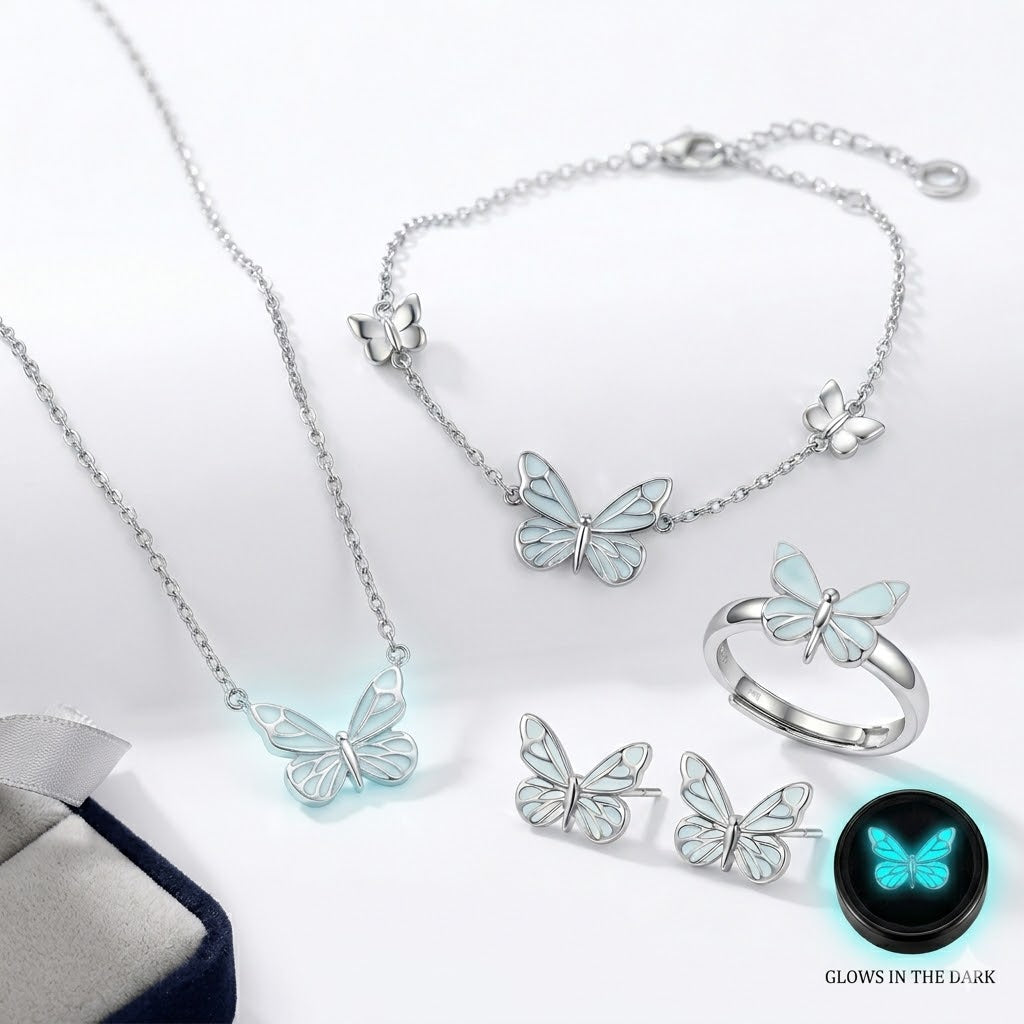 Elevate your jewelry collection with a touch of ethereal wonder. These enchanting earrings feature a delicate butterfly design in a dreamy cerulean blue, blending classic elegance with a hidden, mystical secret: they glow softly when the lights go down.