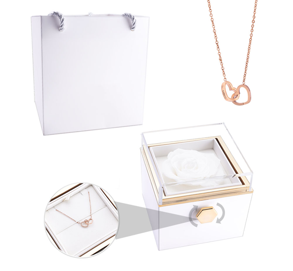 Eternal Preserved Rotating Rose Box With Engraved Necklace